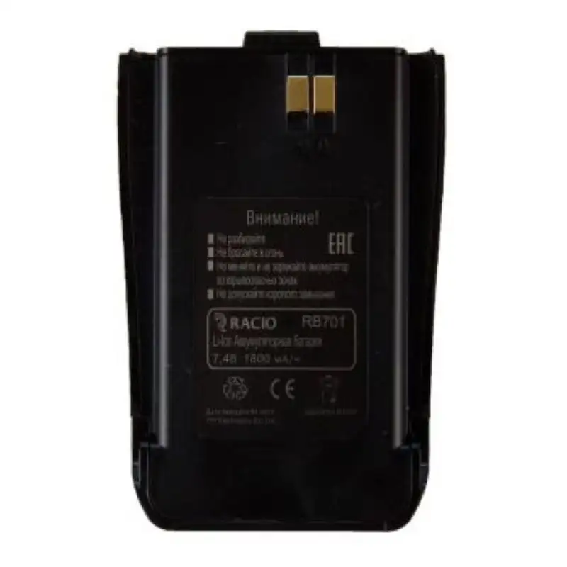 Запасной аккумулятор Racio RB701 комплектует рацию Racio R700 UHF емкостью 1800 мАч на 7,4 В, обеспечивая 12 часов работы в стандартном режиме без подзарядки. Li-Ion конструкция исключает эффект памяти — заряжайте частично без риска потери емкости, что упрощает эксплуатацию на объектах. Поставляется без клипсы для снижения веса, фиксируется напрямую в станции одной рукой.