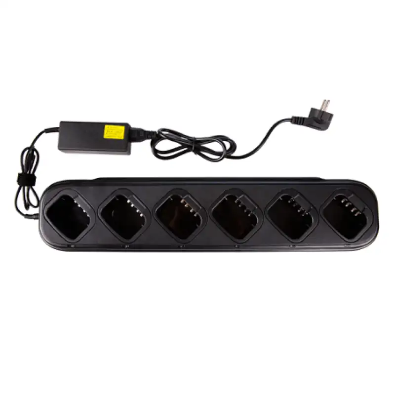 Шестиканальная зарядная база Racio RC-906 стабилизирует 8.6 В / 400-450 мА из 110-220 В для R900D/R900 UHF/R900 VHF аккумуляторов, фокусируясь на эффективности цифрово-аналоговых UHF/VHF парков. Многозадачность сокращает логистику на удалённых объектах с посменной эксплуатацией.
