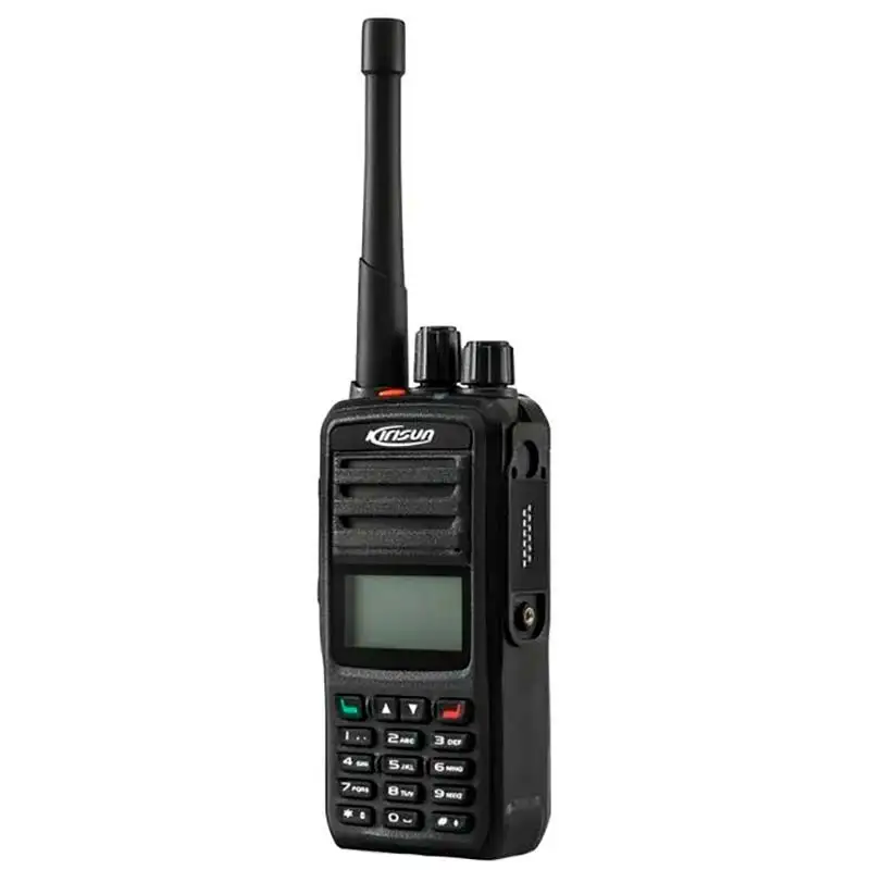 Kirisun DP580 GPS VHF — это продвинутая портативка DMR Tier II для VHF-диапазона 136-174 МГц. Она обеспечивает мощный сигнал до 5 Вт на дальность 12 км в открытых зонах. Встроенный GPS точно определяет координаты до 2,5 м. Смешанный режим сочетает аналоговый и цифровой сигналы. 1024 канала в 64 зонах с VOX и голосовым меню упрощают операции. Корпус IP67 по MIL-STD-810G выдерживает погружение и удары. АКБ 2000 мАч работает 20 часов в цикле 5-5-90. Идеальна для логистики и спасательных служб.