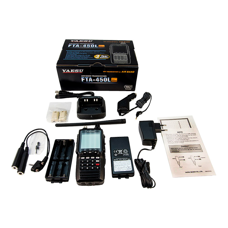 Yaesu FTA-450L Avia также имеет следующие особенности: дисплей 160x160 пикселей, цифровая клавиатура для ввода частоты, погодные каналы NOAA, защита IPX5 и громкий динами на 800 мВт.