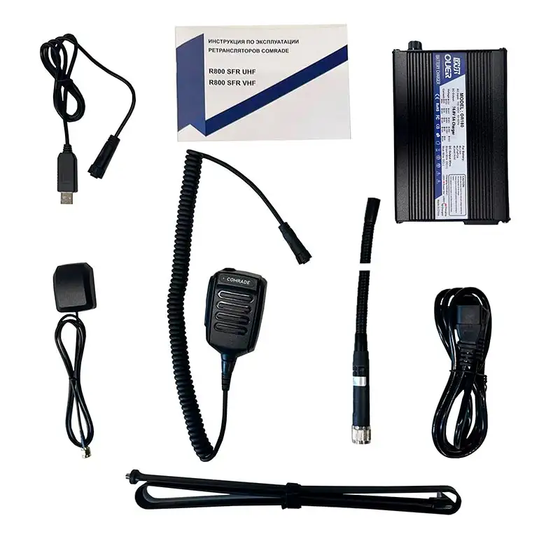| Комплектация | Ретранслятор Comrade R800 DMR UHF + Тангента + Кабель зарядки + Антенна + Кабель программирования + Переносной рюкзак камуфляжного цвета + Инструкция + Гарантийный талон | |