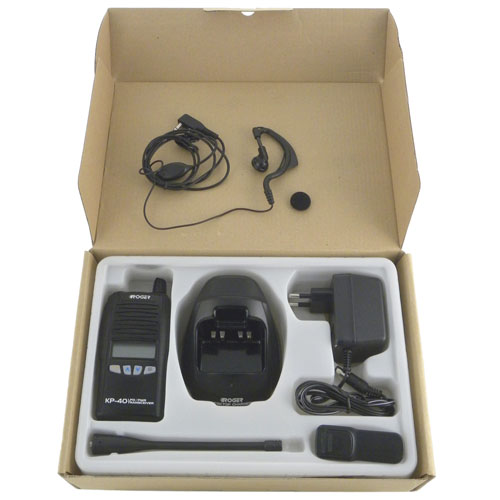 Профессиональная рация Roger KP-40 выполнена в прочном влагозащищенном корпусе и способна работать в двух безлицензионных диапазонах - LPD и PMR , имеет мощность 4 Вт и 77 каналов. Кроме того, комплектуется гарнитурой и емким LiIon аккумулятором.