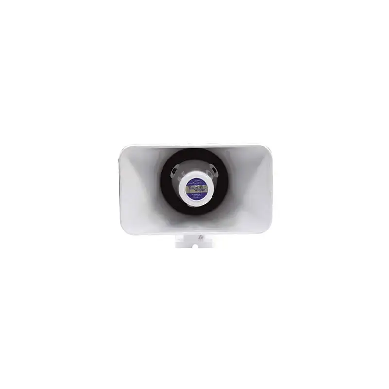 Рупор NavCom 30 Вт малый — компактный рупорный громкоговоритель мощностью 30 Вт с сопротивлением 8 Ом, рассчитанный на использование в судовых системах оповещения и внешних зоне слушания. Он выполнен из прочного пластика ABS, имеет малые габариты и вес около 1,2 кг, что позволяет легко монтировать его на палубе, борту или в рубке; защищён по стандарту IPX7, устойчив к влаге и даже кратковременному погружению в воду, а встроенный двухжильный кабель длиной около 45 см обеспечивает удобное подключение к усилителю или станции для чёткого воспроизведения речевых сообщений и звуковых сигналов на открытом воздухе.