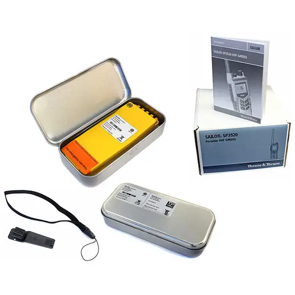 | Комплектация | Радиостанция Sailor SP3520 ГМССБ + Батарея Li-Ion 3000мАч B3501 (не перезаряжаемая) + Антенна 62-124370 с разъёмом SMA-male + Клипса 62-124320 + Ремешок для ношения на запястье 41-124375-C + Сертификат Российского Морского Регистра Судоходства + Инструкция + Гарантия. Внимание! Перезаряжаемый аккумулятор Li-Ion 1800мАч и зарядное устройство типа "стакан" ПРИОБРЕТАЮТСЯ ОТДЕЛЬНО! | |