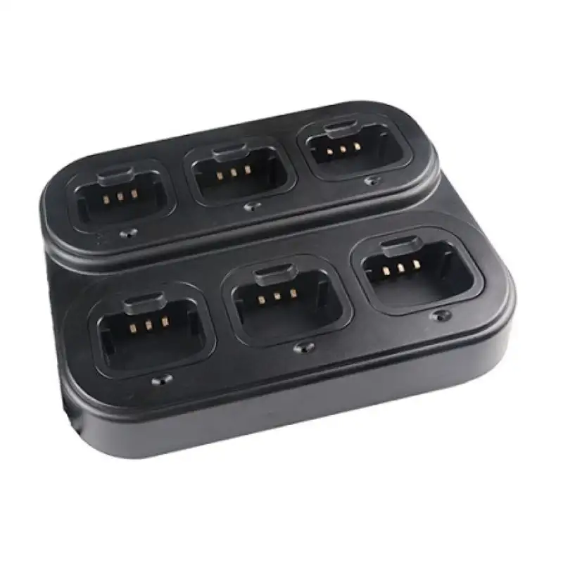 Шестипозиционное зарядное устройство Racio RC216 - это высокоэффективное устройство, предназначенное для одновременной зарядки до шести аккумуляторов портативных радиостанций серии Racio R210.