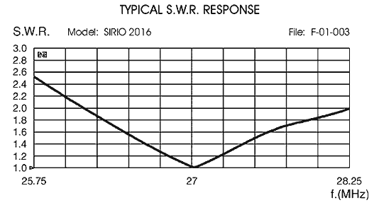 Модель Sirio 2016 представляет собой прочную и надёжную базовую антенну, укомплектованную телескопическим алюминиевым штырем и антистатическим шаром для предотвращения накопления статических зарядов.
