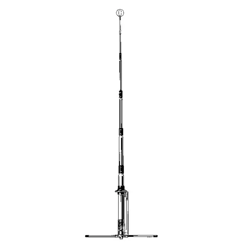 Sirio GPE 27 5/8 — это надежная антенна типа ground plane, предназначенная для работы в любительском диапазоне 10 м с частотами от 26 до 28 МГц. Конструкция обеспечивает линейную вертикальную поляризацию и круговую направленность сигнала. Механически антенна собрана из алюминия, меди, гальванической стали и нейлона, что сочетает легкость и прочность. Высота 5.95 м и вес около 2.5 кг делают ее удобной для монтажа на стандартные мачты. Максимальная мощность постоянной нагрузки 250 Вт, кратковременной — 750 Вт. Предусмотрено заземление по постоянному току для защиты.