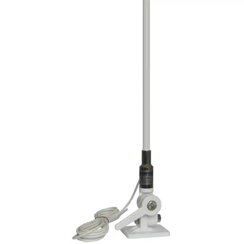 Морская антенна Sirio SB 3 M предназначена для установки на диэлектрические поверхности судна и работы в VHF диапазоне 155.5–160 МГц. Модель выполнена в виде 3/4 длины волны J-pole с усилением 4.15 dBi и максимальной мощностью 100 Вт. Антенна имеет всенаправленную круговую диаграмму направленности и линейную вертикальную поляризацию.