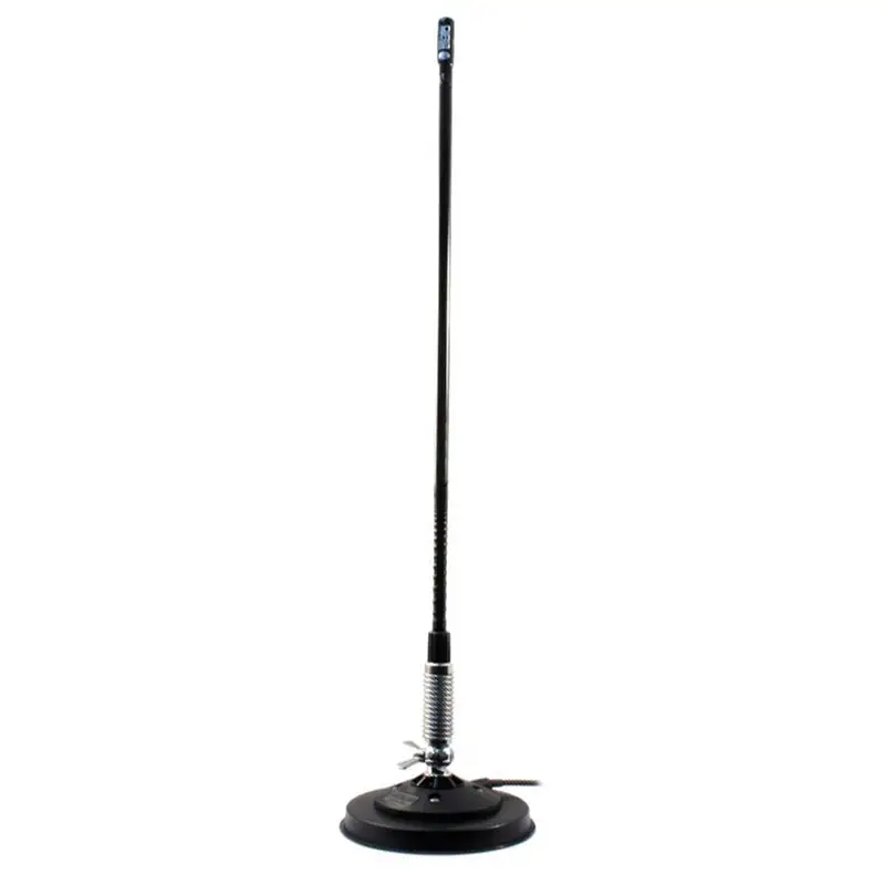 Магнитная автомобильная антенна Sirio Super T3-27 MAG с пружинным витым штырем и логарифмической катушкой обеспечивает стабильную связь в диапазоне CB 26.9-27.5 МГц. Она отличается хорошим коэффициентом усиления, возможностью настройки с помощью верхнего винта и прочным корпусом, выдерживающим низкие температуры. Длина 620 мм, масса около 400 г, максимальная мощность 20 Вт, подключение через UHF-штекер.