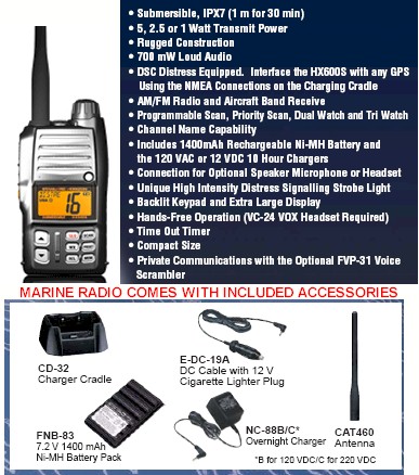 | Комплектация | Радиостанция HX-600S + Антенна CAT460 + Аккумулятор + Зарядное устройство CD-33 для HX-600S + Медленное зарядное устройство NC-88B + Кабель питания E-DC-19A с разъемом прикуривателя на 12 В для CD-33 + Руководство пользователя на русском языке + Гарантийный талон | |