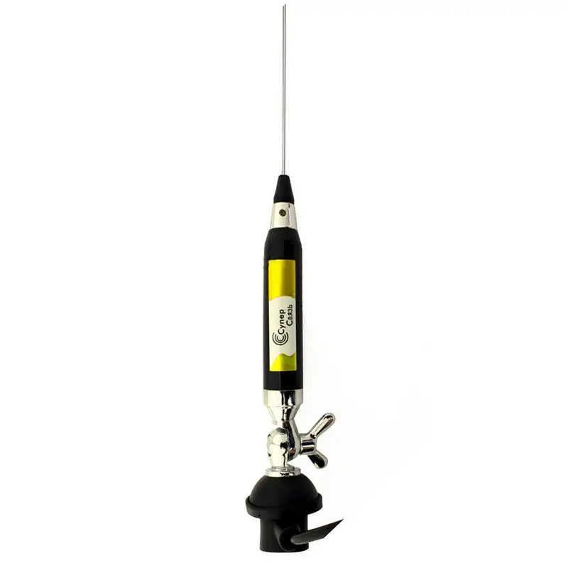 Супер Связь СВ-1500 – это автомобильная антенна врезного типа для связи на частотах 26–28 МГц Си-Би диапазона. Высота антенны составляет 1670 мм, коэффициент усиления – в пределах 1,5–2,5 дБ. На нее можно подавать мощность до 400 Вт. Антенна имеет регулятор угла наклона и снабжена кабелем RG-58 длиной 4 м с соединительным разъемом UHF-male.
