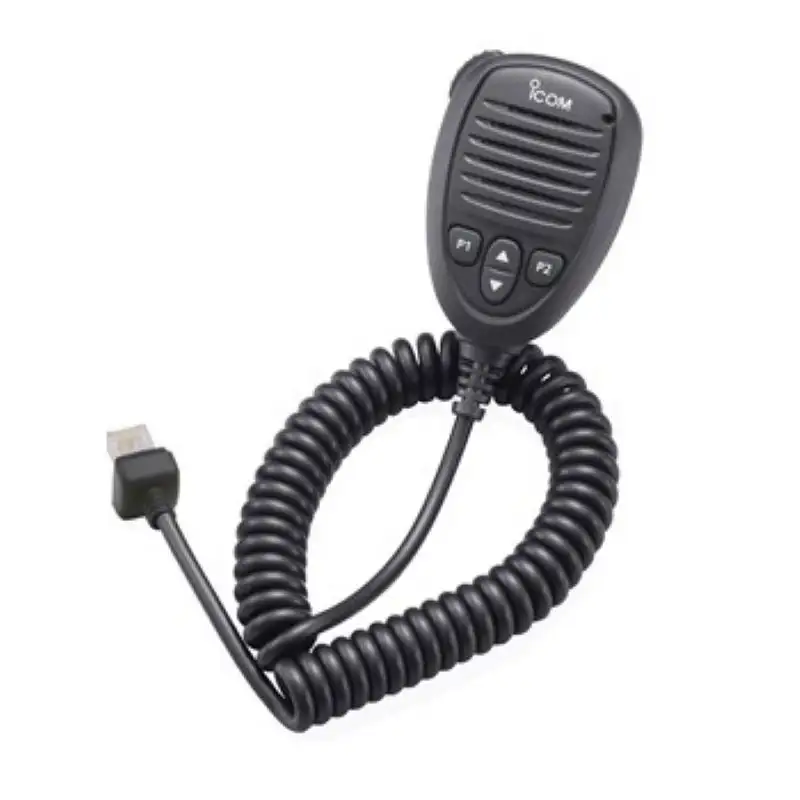 Icom HM-217 — это ручной микрофон (тангента) с интегрированными управляющими кнопками, предназначенный для использования с авиационной радиостанцией Icom IC-A120. Устройство оснащено кнопками управления каналами «вверх» и «вниз», а также двумя программируемыми кнопками, что позволяет быстро переключать функции радиостанции без необходимости доступа к основному блоку. Длина кабеля в свернутом состоянии составляет 450 мм, что обеспечивает удобство использования и компактность рабочего пространства. Корпус тангенты имеет степень защиты IP54, что гарантирует устойчивость к пыли и брызгам воды, позволяя применять микрофон в условиях повышенной влажности и пыли. Вес устройства — около 260 грамм, что делает его достаточно прочным и удобным для длительного использования.