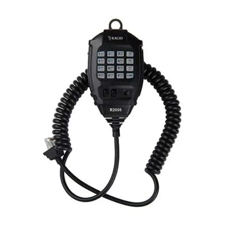 Тангента Racio RM2001 подключается по RJ45 к базе R2000 UHF, предоставляя DTMF-клавиатуру для набора тонов, переключения каналов и активации функций без отвлечения от дороги. Подсветка клавиш обеспечивает читаемость в ночных условиях или туннелях, где видимость минимальна, упрощая координацию в колоннах или патрулях.
