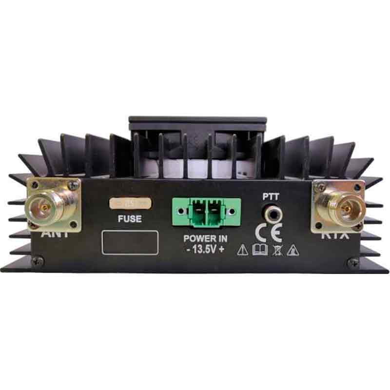 Аппарат имеет защиту от высокого уровня КСВ, перегрузок, перегрева и переполюсовки, что повышает стабильность и надежность его функционирования. Габариты усилителя составляют 190x82x190 мм, что позволяет удобно размещать устройство в мобильных и стационарных установках.