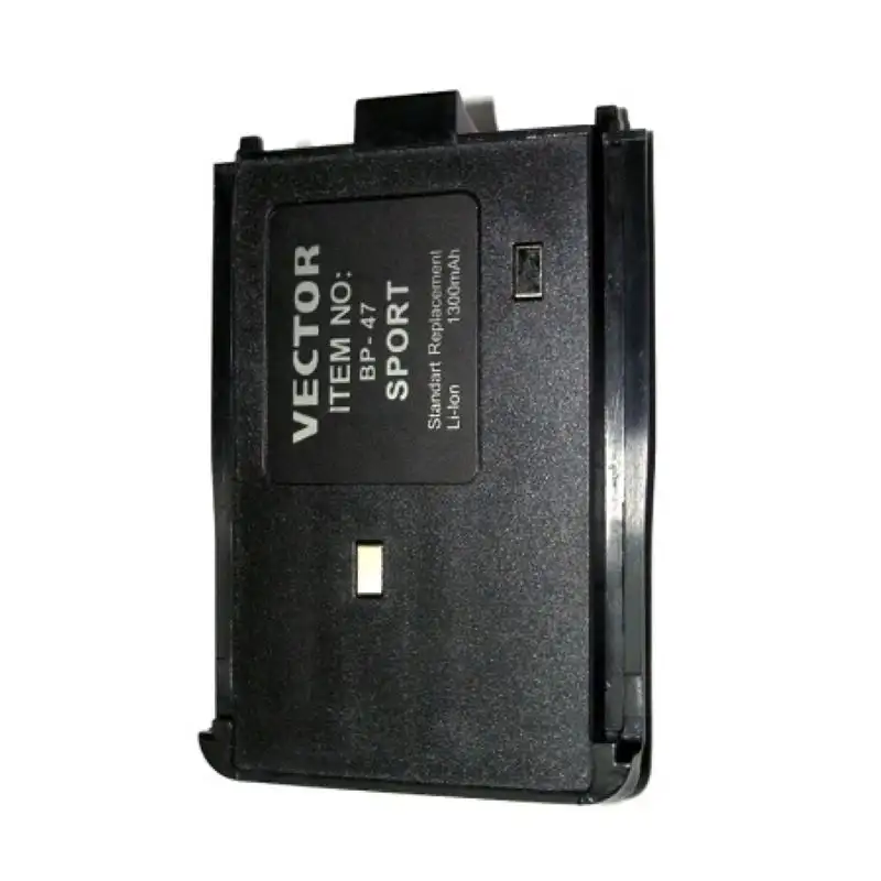 Аккумулятор Vector BP-47 Sport разработан специально для моделей Vector VT-47 Sport, обеспечивая длительную и стабильную работу до 10 часов в режиме циклического использования 5-5-90. Литий-ионная технология и ёмкость в 1300 мАч обеспечивают надёжное питание при весе всего 100 граммов и компактных размерах 74×57×16 мм.