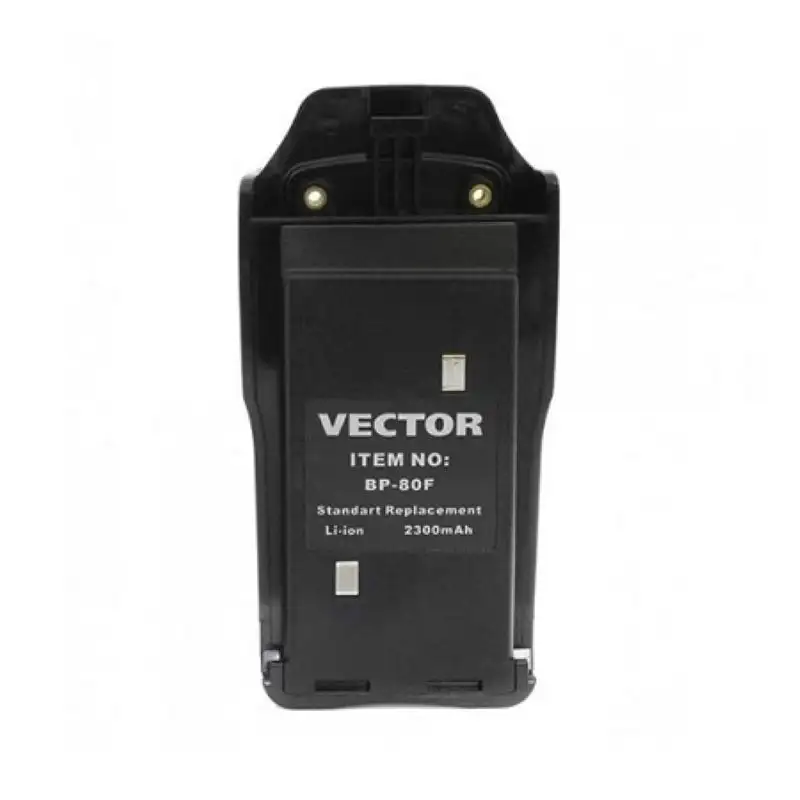 Vector BP-80 F — штатный литий-ионный аккумулятор с ёмкостью 2300 мАч и напряжением 7,4 В, предназначенный для использования в портативных радиостанциях Vector VT-80 F. Этот аккумулятор способен обеспечить работу устройства до 10 часов в режиме 5/5/90 (приём/передача/ожидание).