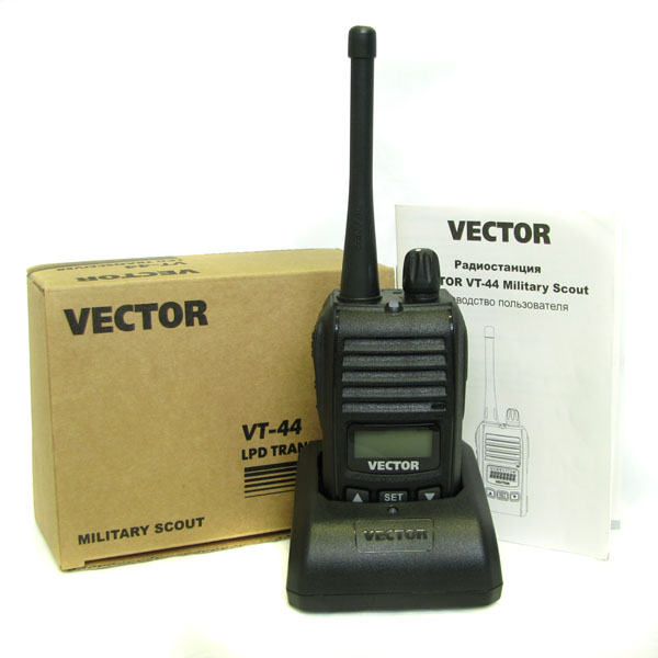 | Комплектация | Радиостанция Vector VT-44 Military Scout + Аккумулятор Li-Pol напряжением 7.4В + Зарядное устройство типа "стакан" + Адаптер для зарядного устройства + Антенна с разъёмом SMA-male + Клипса + Инструкция на русском языке + Гарантия | |