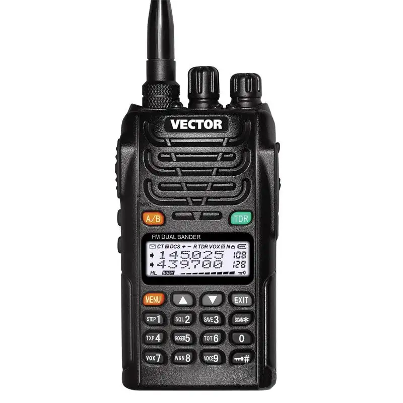 Переносная радиостанция Vector VT-48 W сочетает VHF 136-174 МГц (TX/RX до 5 Вт) и UHF 400-470 МГц (до 4 Вт) в компактном корпусе 58x105x38 мм весом 250 г с металлическим шасси и защитой IP56 от пыли/брызг, выдерживая падения и температуры -30…+60°C для полевых задач спасателей, строителей или охранников. 128 программируемых каналов с шагом 5/6.25/10/12.5/25/50/100 кГц позволяют прямой ввод частот с клавиатуры, редактировать имена, сканировать группы с приоритетом, а 50 CTCSS + 105 DCS кодов обеспечивают селективный доступ без посторонних в многопользовательских сетях LPD/PMR.