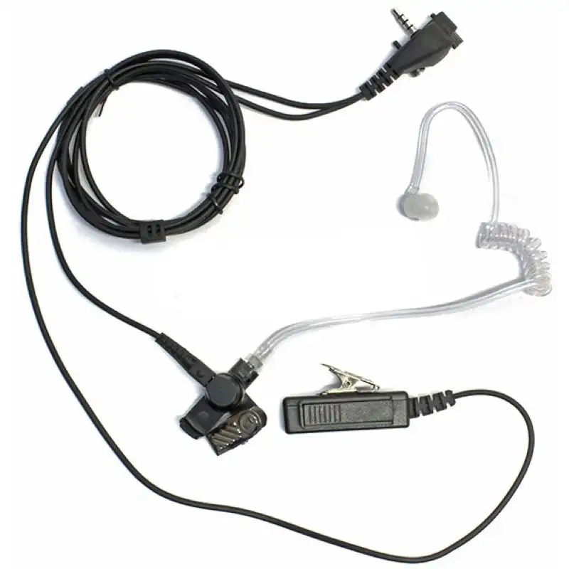 Гарнитура Vertex Standard KHS-8BL с прозрачным звуководом для скрытого ношения оснащена вытягивающимся проводом для свободного движения головой. Болтовое крепление обеспечит надёжный контакт с разъёмом гарнитуры радиостанции.