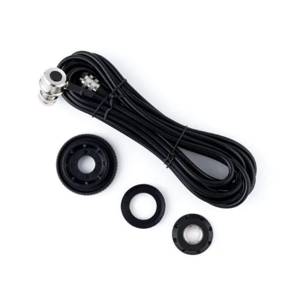 Врезное крепление Аргут CL-3 UHF предназначено для установки автомобильных антенн с UHF-коннекторами в отверстия на кузове автомобиля, таких как крыша или капот. Для монтажа отверстие можно просверлить или пробить, при этом необходимо обеспечить плотный контакт металлического основания с кузовом, избегая контакта с краской для правильной настройки КСВ. Также возможно крепление через кронштейн, установленный на водосточный желоб, что позволяет избежать сверления кузова. Кабель RG-58 с двойным экраном длиной 4,5 метра и разъемом PL-259 проходит через салон автомобиля, при этом важно избегать острых перегибов и механических повреждений кабеля.