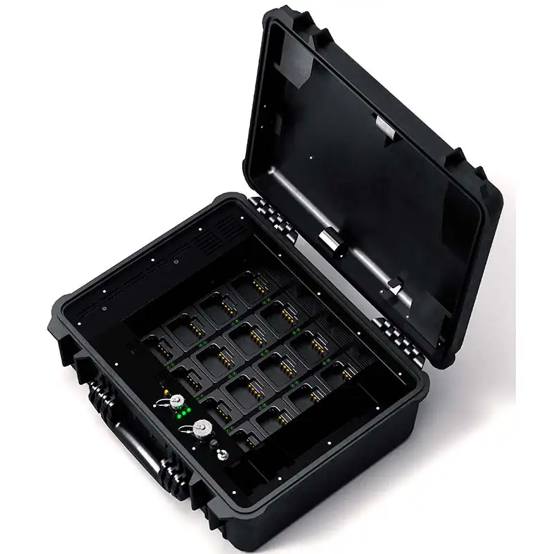 Зарядная станция Гранит ИВЭП-МКМ/16 — профессиональный групповой источник для одновременного восстановления до 16 аккумуляторных батарей 2ЛП-2,6/МКМ от радиостанций в полевых условиях или на базах, где связь не должна простаивать. Питается от 27 В ±10% с максимальной мощностью 350 Вт и током заряда до 1,4 А на ячейку, обеспечивая полную емкость за часы без перегрузки, с индикацией статуса и контролем каждой батареи для надежной автономии до суток. Габариты 540×235×455 мм и масса 23 кг позволяют транспортировать в контейнере с рациями, работая стабильно от 0 до +40 °C без сбоев от тряски или перепадов. Идеальна для тактических групп, спасателей или спецслужб, где компактная группа быстро возвращает батареи в строй, держа эфир непрерывным — ИВЭП-МКМ/16 всегда на шаг впереди дефицита заряда.