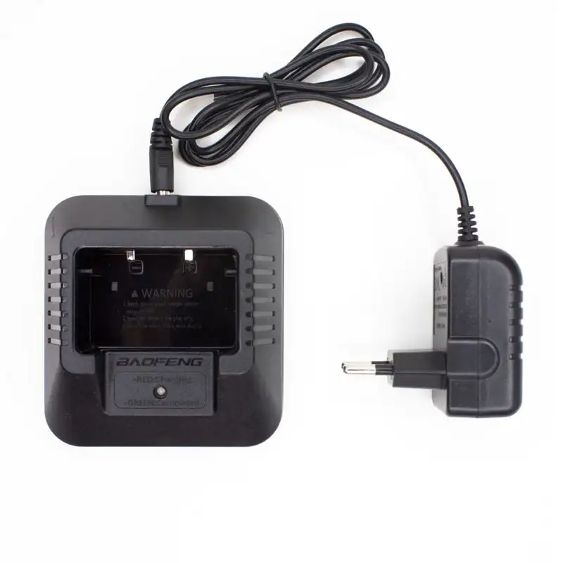 Зарядное устройство Baofeng CH-5 выполнено в классическом формате зарядного стакана и предназначено для работы с портативными радиостанциями серии UV-5R и другими совместимыми моделями. Устройство оснащено интеллектуальной системой управления зарядом, которая автоматически определяет тип подключенного аккумулятора и выбирает оптимальный режим восстановления емкости. Двухцветный светодиодный индикатор наглядно отображает процесс: красный цвет сигнализирует о активной фазе заряда, зеленый - о его завершении. Конструкция предусматривает надежную фиксацию радиостанции в рабочем положении за счет продуманной формы посадочного места.