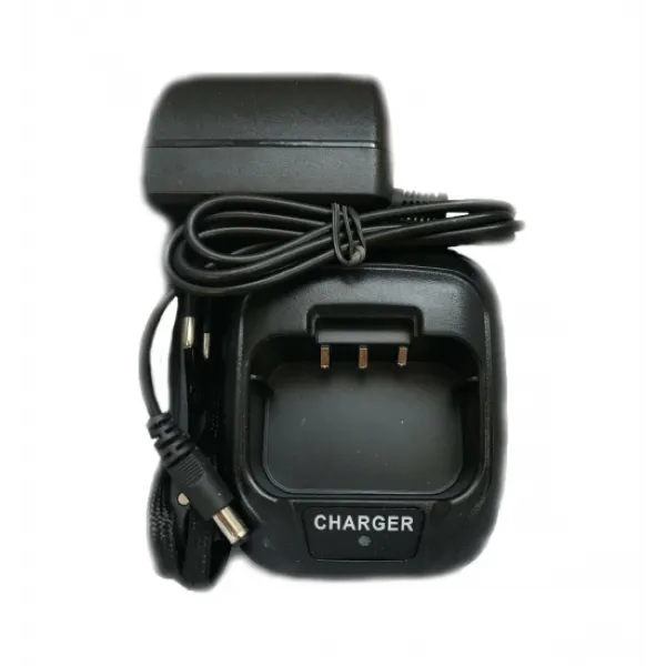 Комплект включает зарядный стакан и адаптер с входным напряжением ~220 В AC 50-60 Гц, стабильным выходом ~10 В DC при силе тока 400 мА, автоматически определяет вставленный аккумулятор или рацию целиком, исключая перезаряд, перегрев, короткие замыкания. Светодиодная индикация показывает статус (зарядка/готово), работает при температурах 0...+40°C, компактный вес ~350 г, продлевает автономию до 15 часов непрерывной работы.
